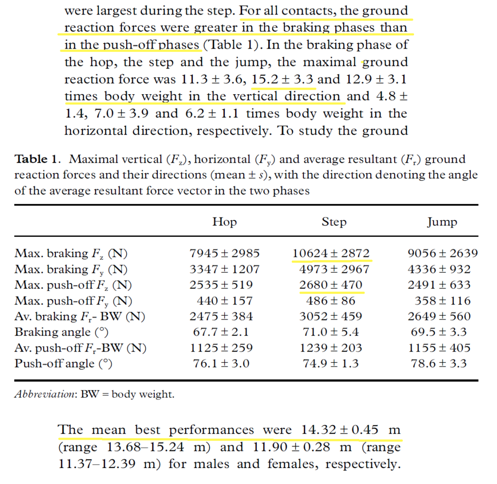 The ground reaction force is the force responsible for our movement. We apply force to the ground, the ground reacts back and propels us in the opposite direction. During walking peak ground reaction force that impacts the body oscillates around our body weight and during running it goes up to almost 8 times our body weight, and during a triple jump, it can exceed 20.