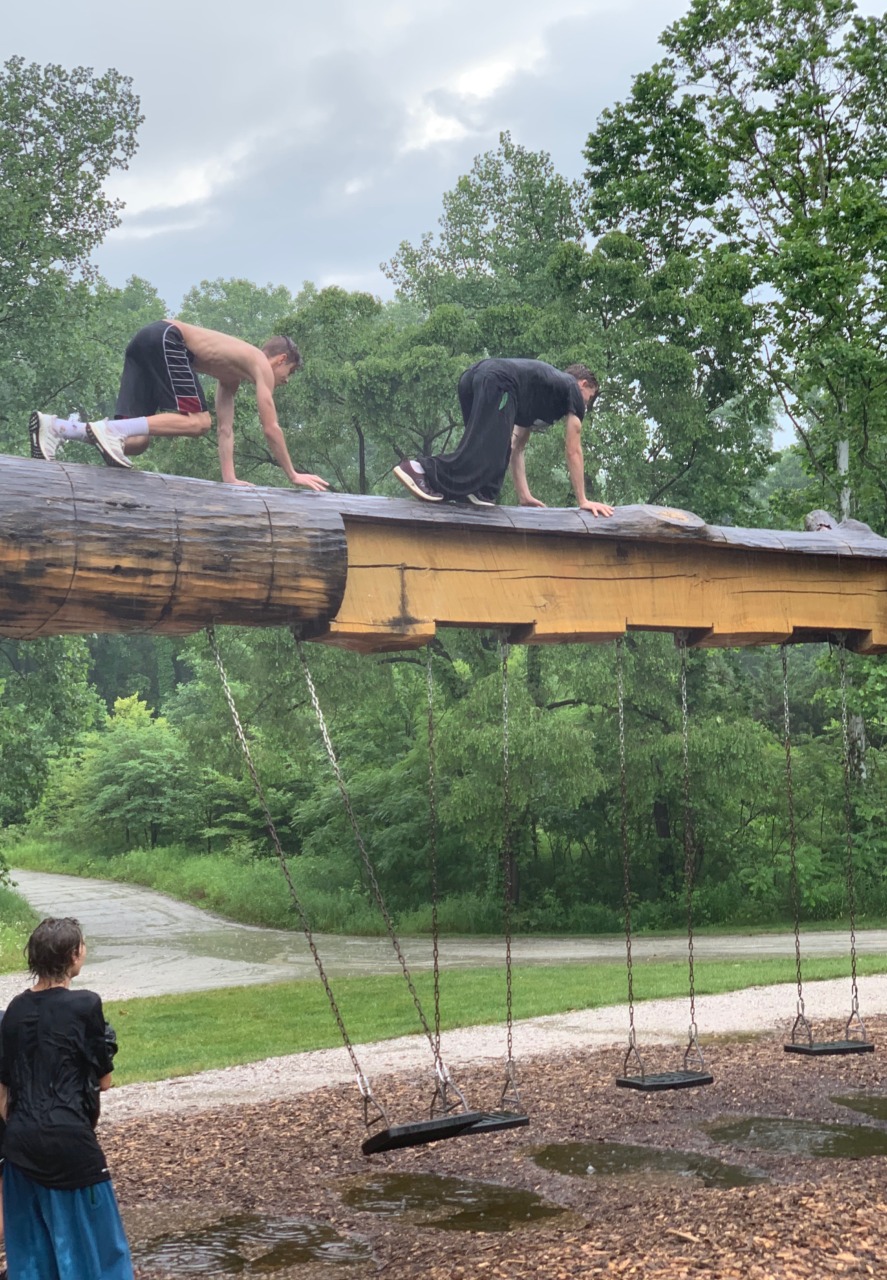I would tip over a plastic basketball hoop in my backyard that we found on the street with a free sign on it and roped it up to my bike and dragged it back to my house, to use it in order to practice vaults. It was extremely stable… not. From there I grabbed my brother and one of his good friends Cole who would years later turn into one of my lead coaches at F8 Movement.